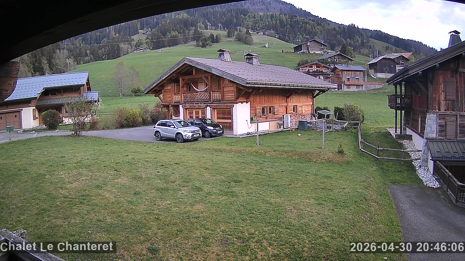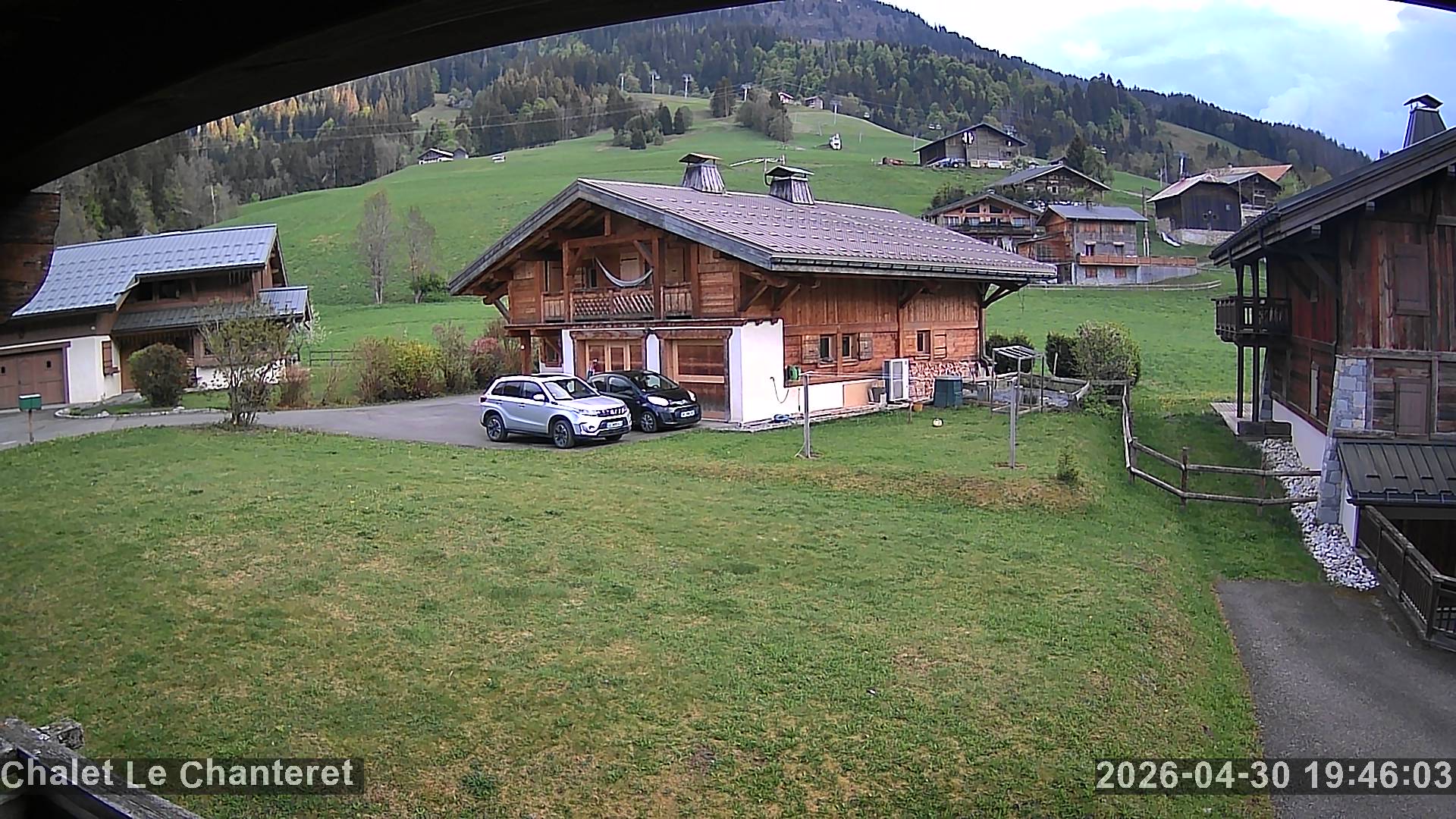 Hotel Griyotire has links to two great panoramas over Praz Sur Arly, looking down from Les Varins on the lower ski slopes overlooking the town – one taken in winter and one in summer. The marker in the thumbnail below indicates the position where Chalet Chanteret has been built.